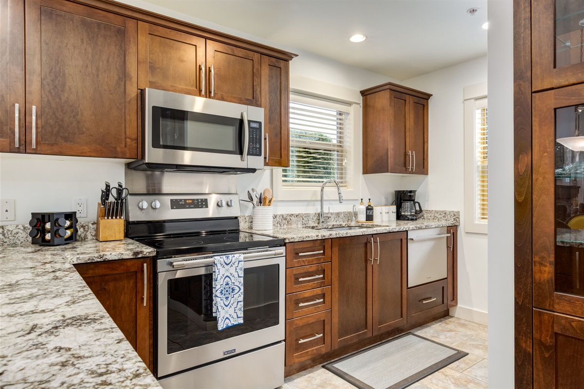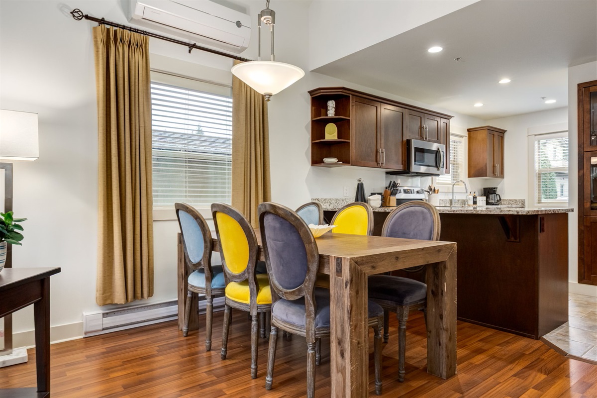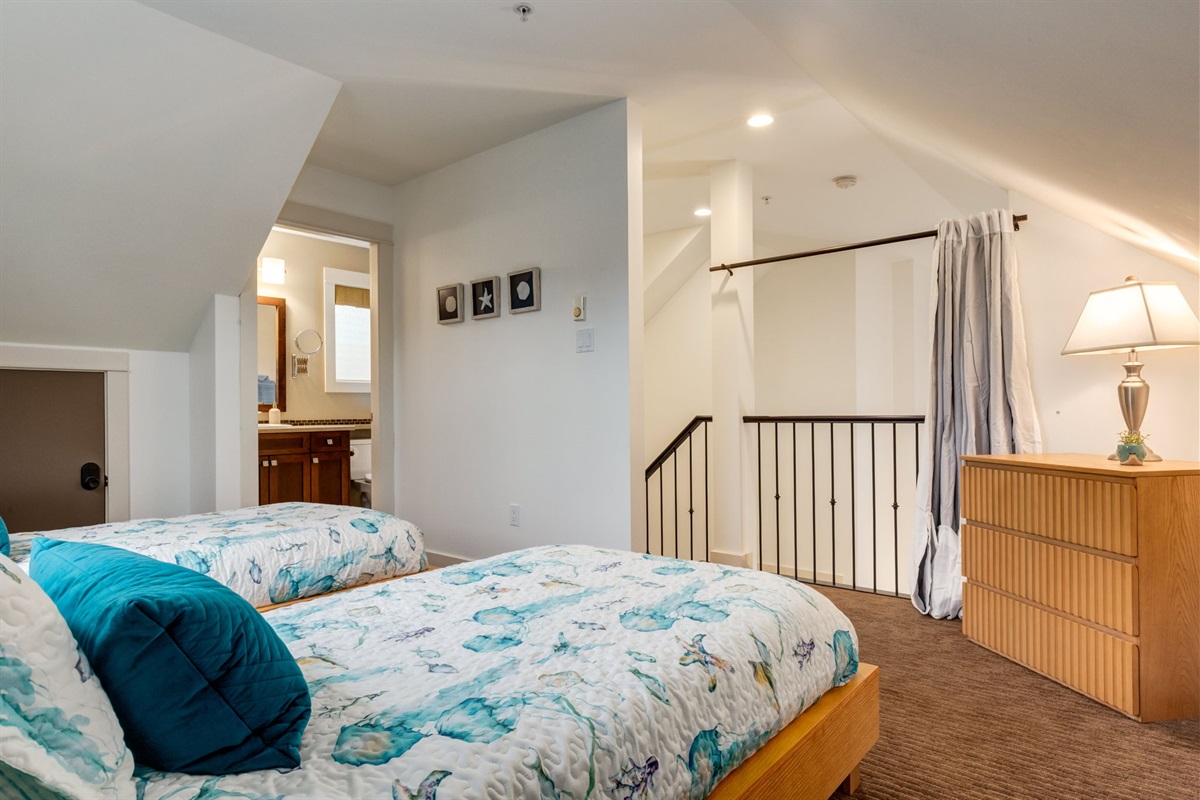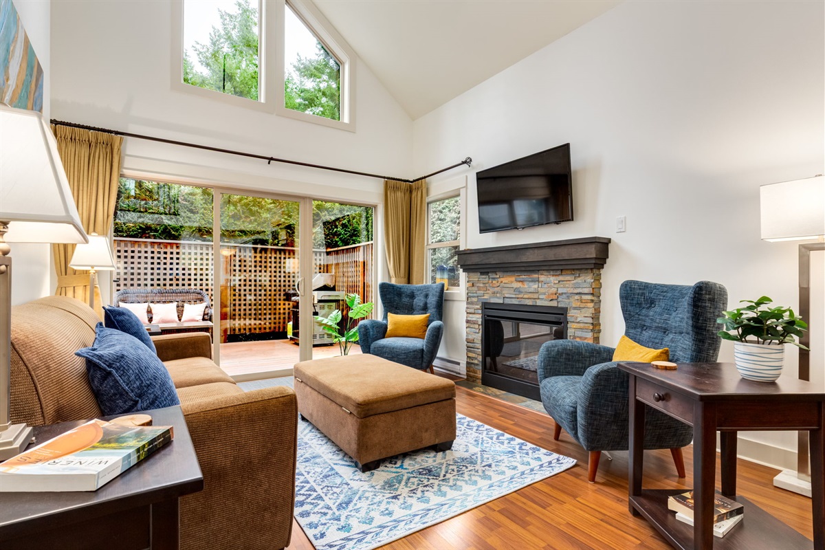 Relax in the bright, open-concept living space with vaulted ceilings, plush seating, and a fully stocked kitchen ready for family dinners or quiet evenings in. The three bedrooms are comfortably furnished with quality linens and ample storage, making it easy to settle in for weeks or months. (Please note that the loft bedroom is semi-private with a curtain providing separation from the living area below)