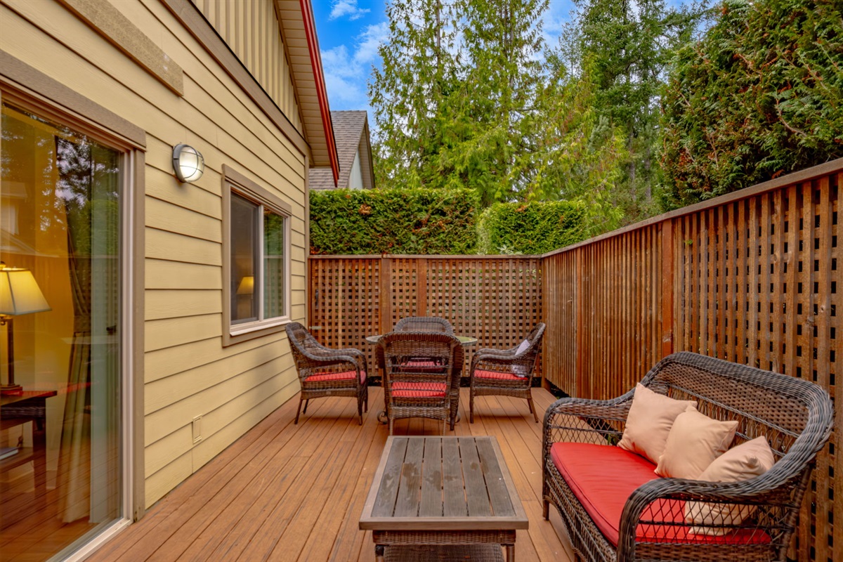Private, fenced deck with BBQ and outdoor seating